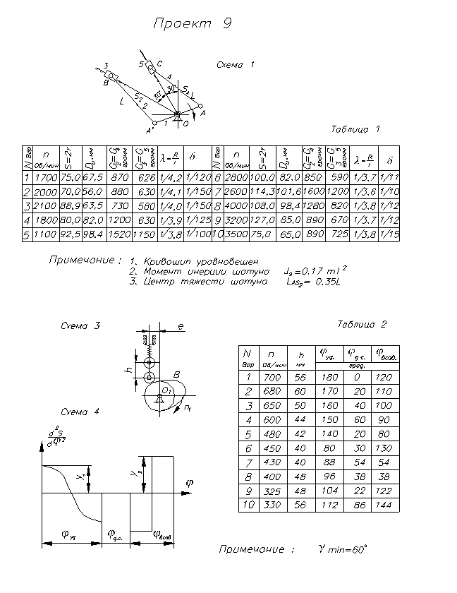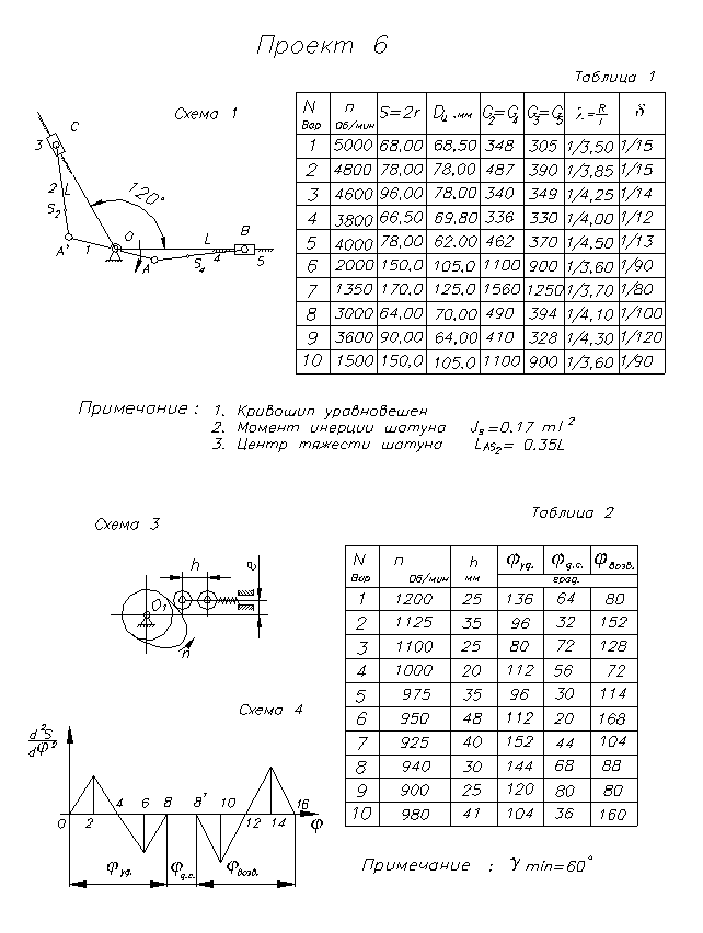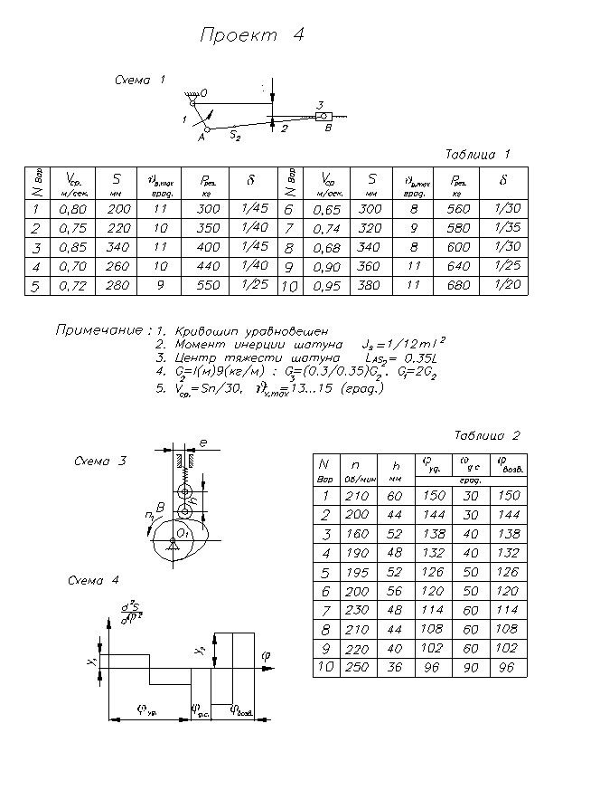 1. Структурный, кинематический, кинетостатический анализ механизма [схема 1, схема 2,