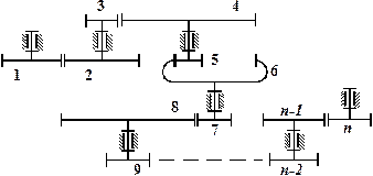 (рис. 2), передаточное отношение от ведущего (первого) к ведомому (n-му) колесу определяется формулой