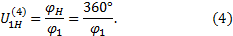 планетарном механизме (рис. 1) поворачиваем входное звено (водило Н) на угол φН=360°, определяем угол φ1 поворота выходного звена (колеса 1), тогда