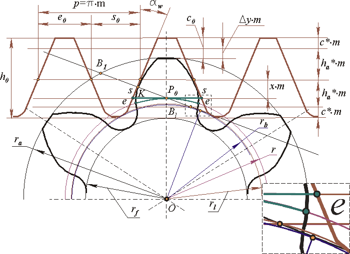 - Выведите основные размеры зубчатого колеса (ra, s,h), используя схему станочного зацепления.