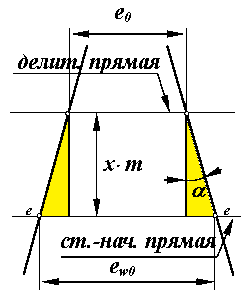 между разноименными точками профилей зуба. Ширина впадины ey - расстояние по дуге