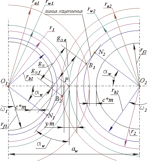 Изобразим схему зацепления эвольвентной зубчатой передачи (рис.12.12).