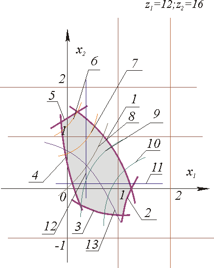 (рис.13.2). Границы блокирующего контура отсекают те значения коэффициентов смещению которые недопустимы по указанным условиям. Значения,