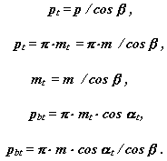 косозубых передачах.