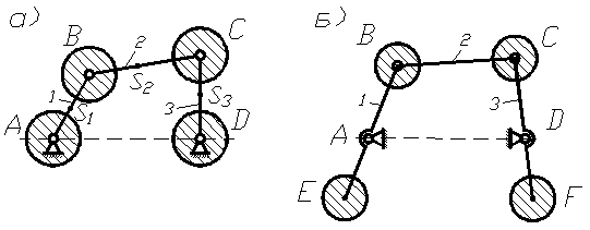с зубчатыми колёсами “a” и “b”. Колесо “a” жёстко связано с кривошипом 1 и