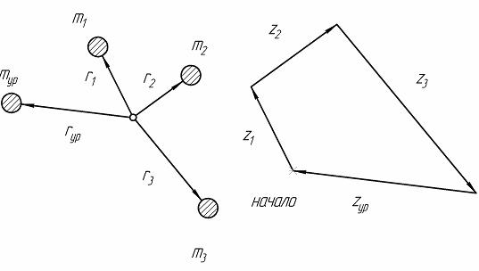 Рассмотрим систему, состоящую из трех неуравновешенных вращающихся масс m1, m2 и m3 (рис. 6.2).