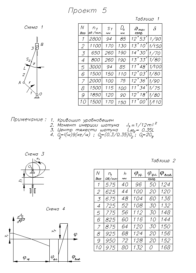 1. Структурный, кинематический, кинетостатический анализ механизма [схема 1, схема 2,