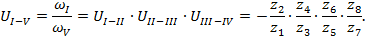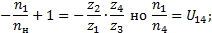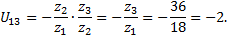 передаточному отношению, как и в случае одноступенчатой передачи, приписываем