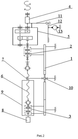 и 3 установлен винт 6, который связан с выходным валом редуктора 5. С винтом