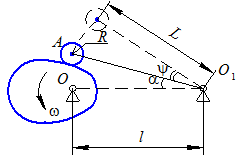 точки их пересечения, и на дуге окружности радиусом l с центром в т. О1 найти центр вращения кулачка – т. О.