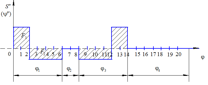 Закон движения толкателя (коромысла) – график аналога ускорения