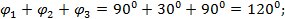 соответствующий сумме трех фазных углов, мм.