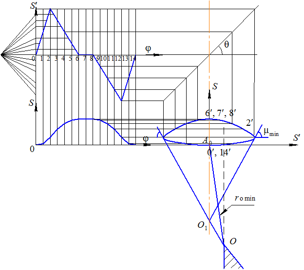 вращения кулачка. Учитывая, что построение диаграммы