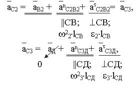 уравнений ускорений определяем величину угловых ускорений звеньев 2 и 3, т.е.